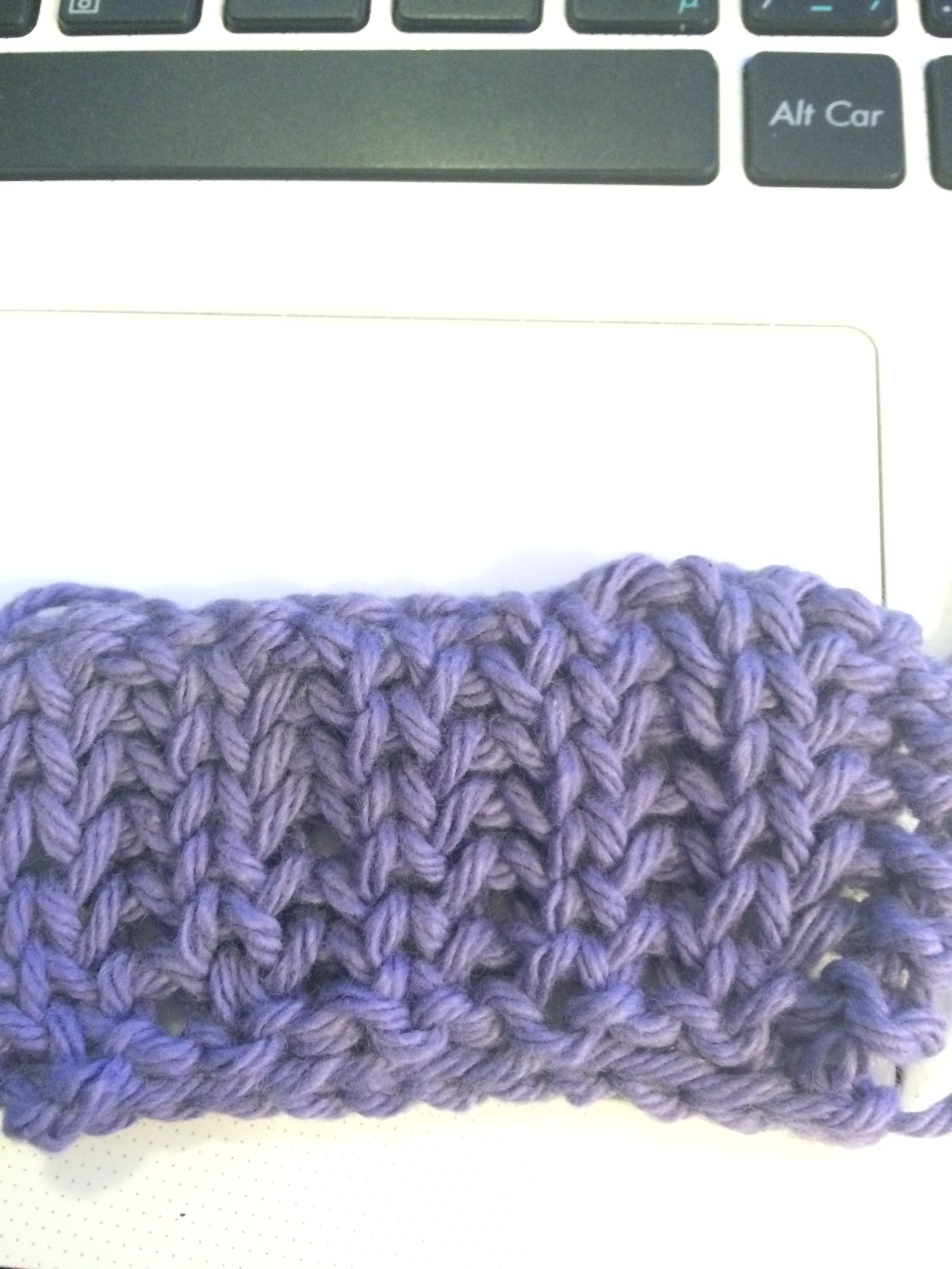 Les côtes anglaises: pour tricoter les côtes anglaises il nous faut un nombre de mailles pair. *1 maille endroit, 1 maille double* répéter jusqu’à la fin en terminant avec 2 mailles endroit.