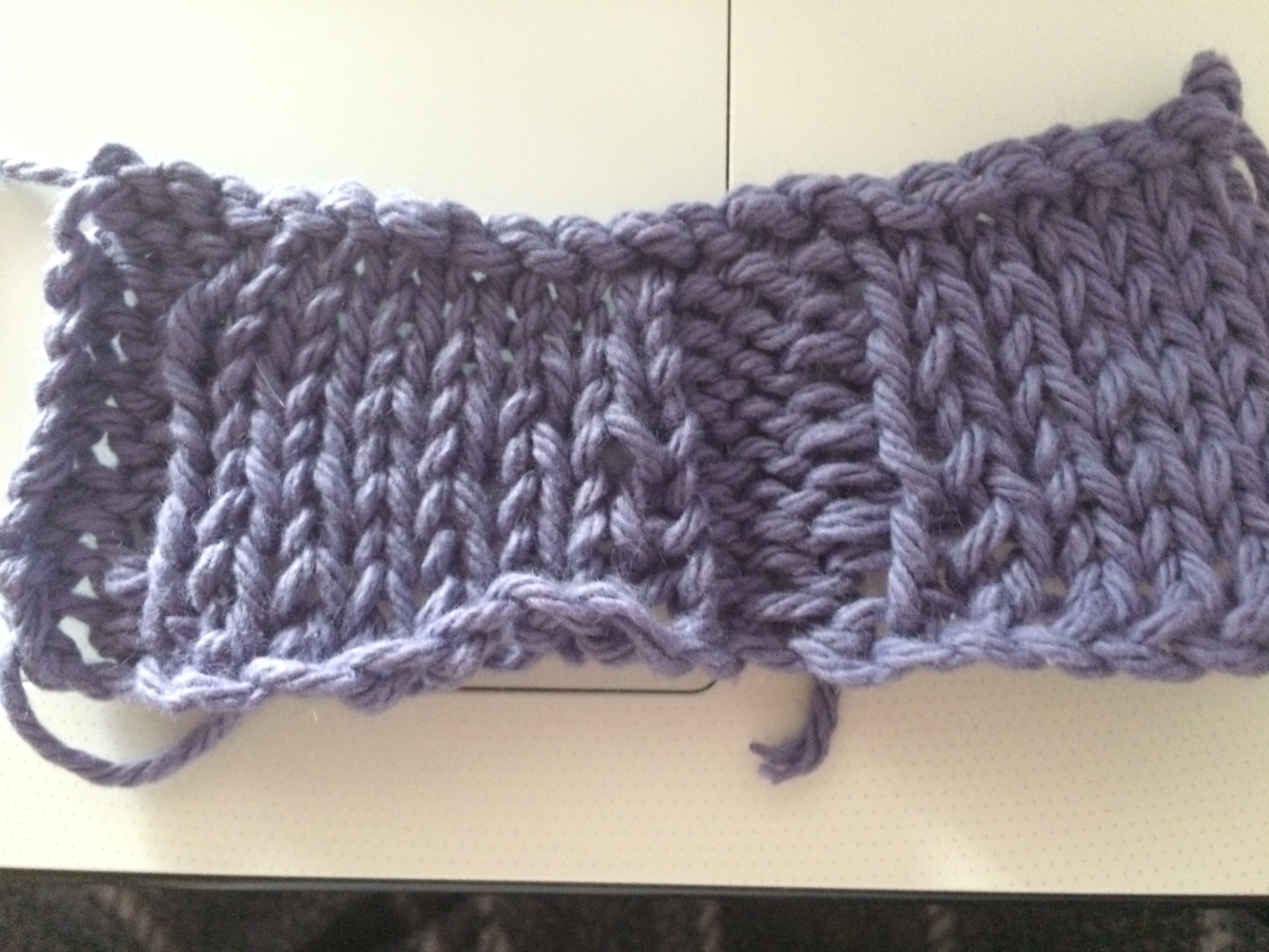 Rang 1: *7 mailles endroit, 3 mailles envers*.