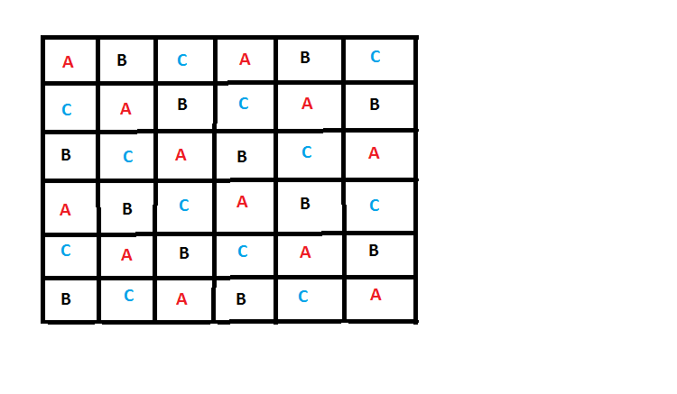 Faite 36 carrés si comme moi vous prenez 3 couleurs, vous allez faire 12 carrés de chaque couleurs.